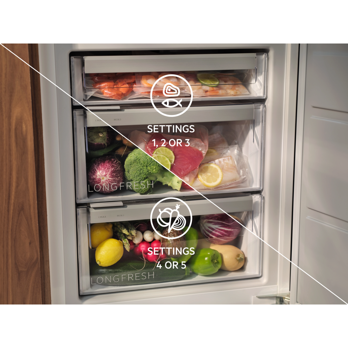 Maximális szintű gondoskodás az ízletes alapanyagok számára. A ZeroDegrees LongFresh rekesznek köszönhetően