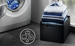 *Belső teszt alapján, 1 kg-os töltet frissítése FreshScent gőzprogramon összehasonlítva a Delicate programon történő mosással.